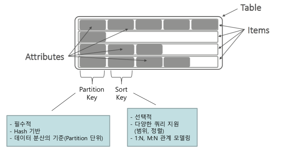 ▪ 별도의 Partition key, Sort key를 선택할 수 있음
