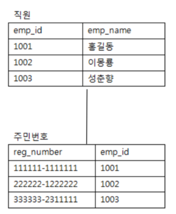 - 예) 상품 분류 정보와 상품 정보