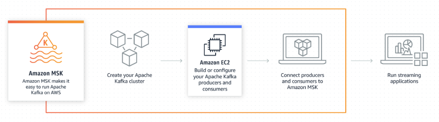 Amazon MSK(Managed Streaming for Apache Kafka)는 AWS에서 제공하는 완전 관리형 apache kafka 서비스입니다. 기존에 on-promise에서 사용하던 혹은 EC2로 관리하던 Apache kafka를 SaaS형태로 사용할 수 있습니다. Apache kafka의 특정 버젼을 그대로 사용할 수 있기 때문에 vanila apache kafka의 버젼별 api spec을 따라서 사용할 수 있습니다.