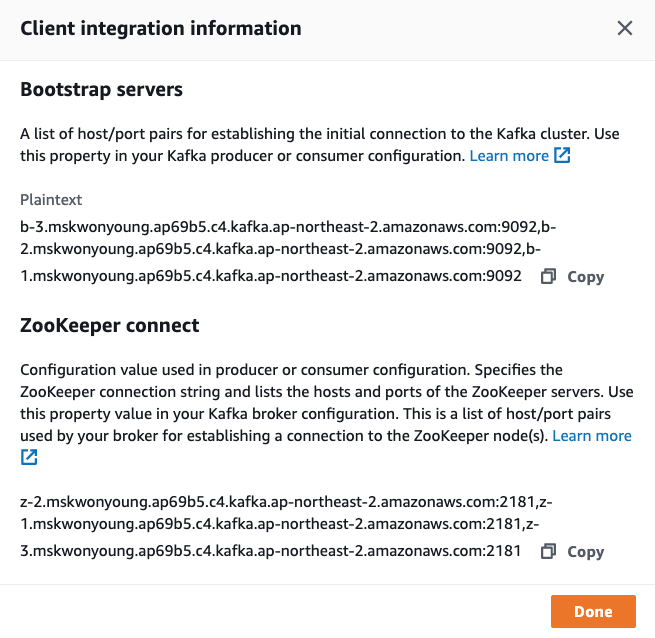configs.put("bootstrap.servers", "b-3.mskwonyoung.ap69b5.c4.kafka.ap-northeast-2.amazonaws.com:9092,b-2.mskwonyoung.ap69b5.c4.kafka.ap-northeast-2.amazonaws.com:9092,b-1.mskwonyoung.ap69b5.c4.kafka.ap-northeast-2.amazonaws.com:9092");