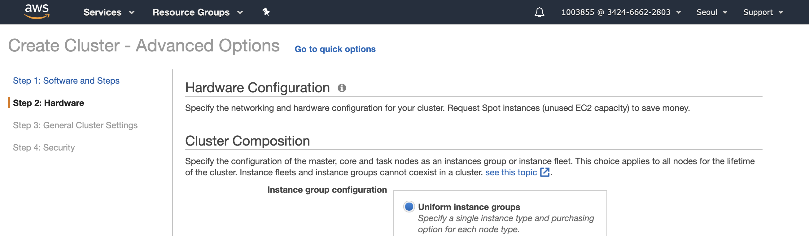 이제 생성 준비가 완료되었습니다. 클러스터 인스턴스가 새로 만들어질때 마다 위 스크립트가 실행되면서 파이썬 라이브러리를 설치합니다. 설치가 완료되면 각 서버에 라이브러리가 설치된 것을 확인할 수 있습니다.