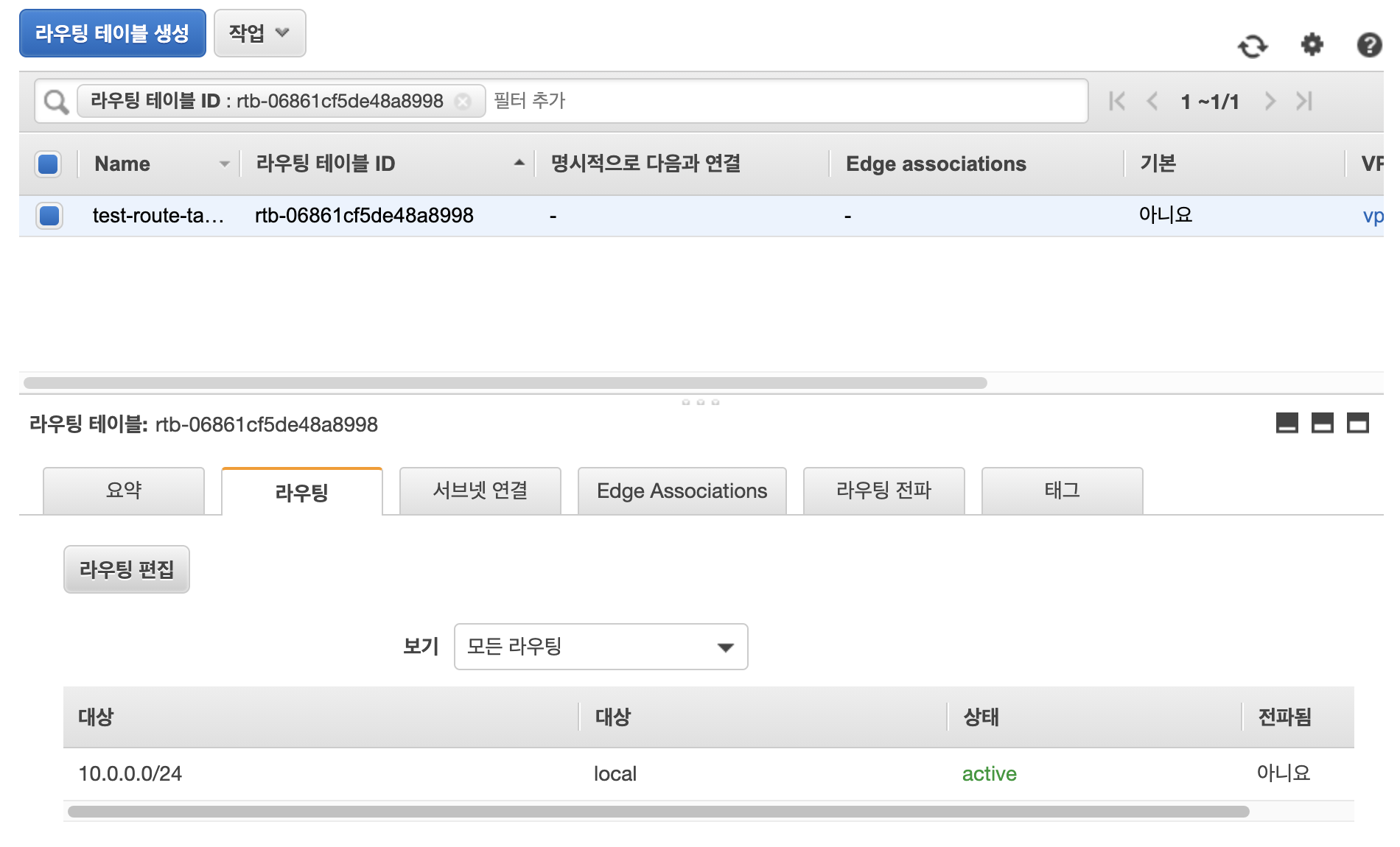 생성이 완료되면 라우팅 편집을 클릭해서 인터넷 게이트웨이를 연결해야합니다.