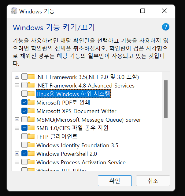 - Linux용 Windows 하위 시스템