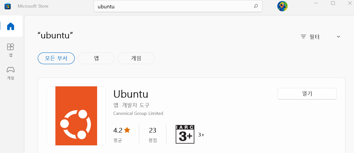 다음으로 Ubuntu를 마이크로소프트 스토어에서 설치합니다.