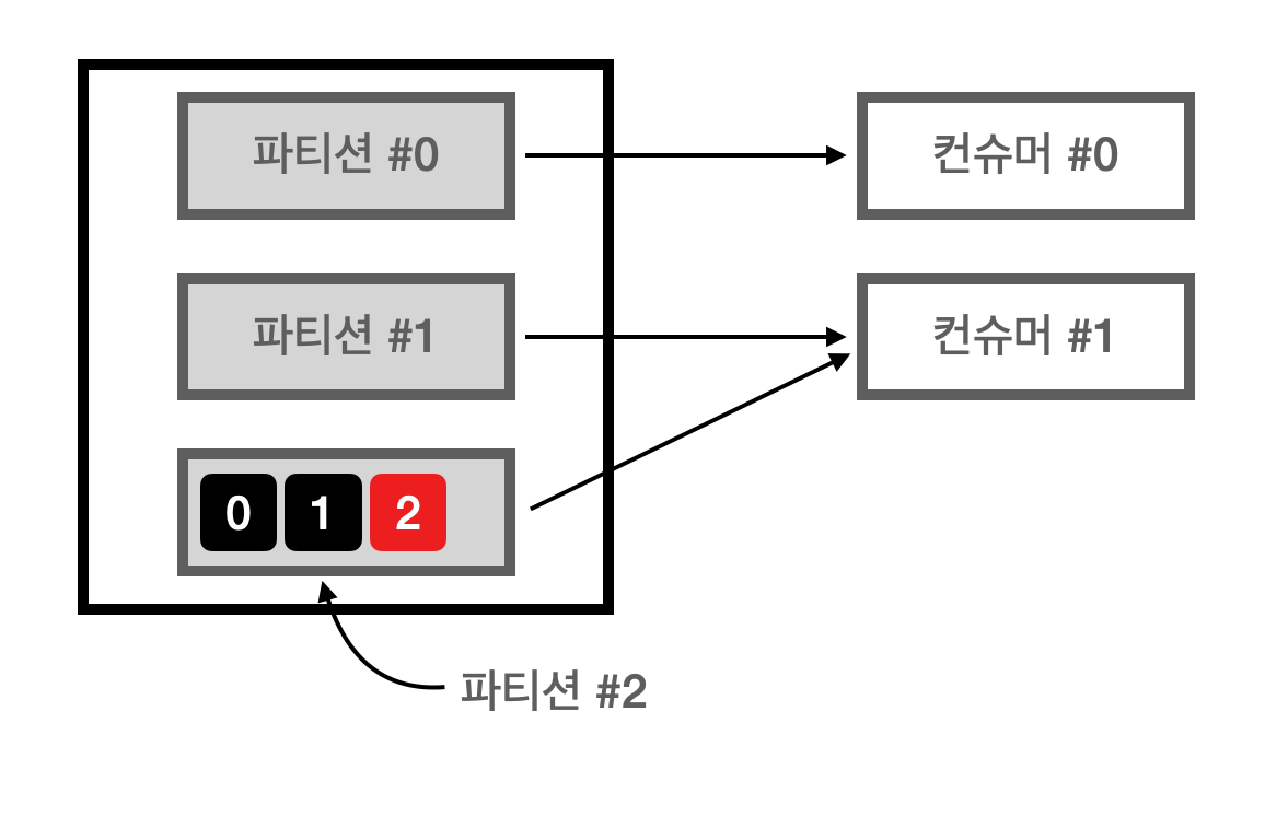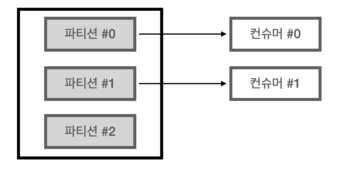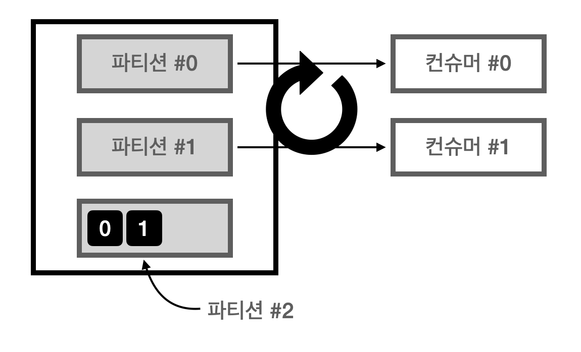 1) 파티션2개인 토픽에 컨슈머 2개가 연동되어 있는 그림