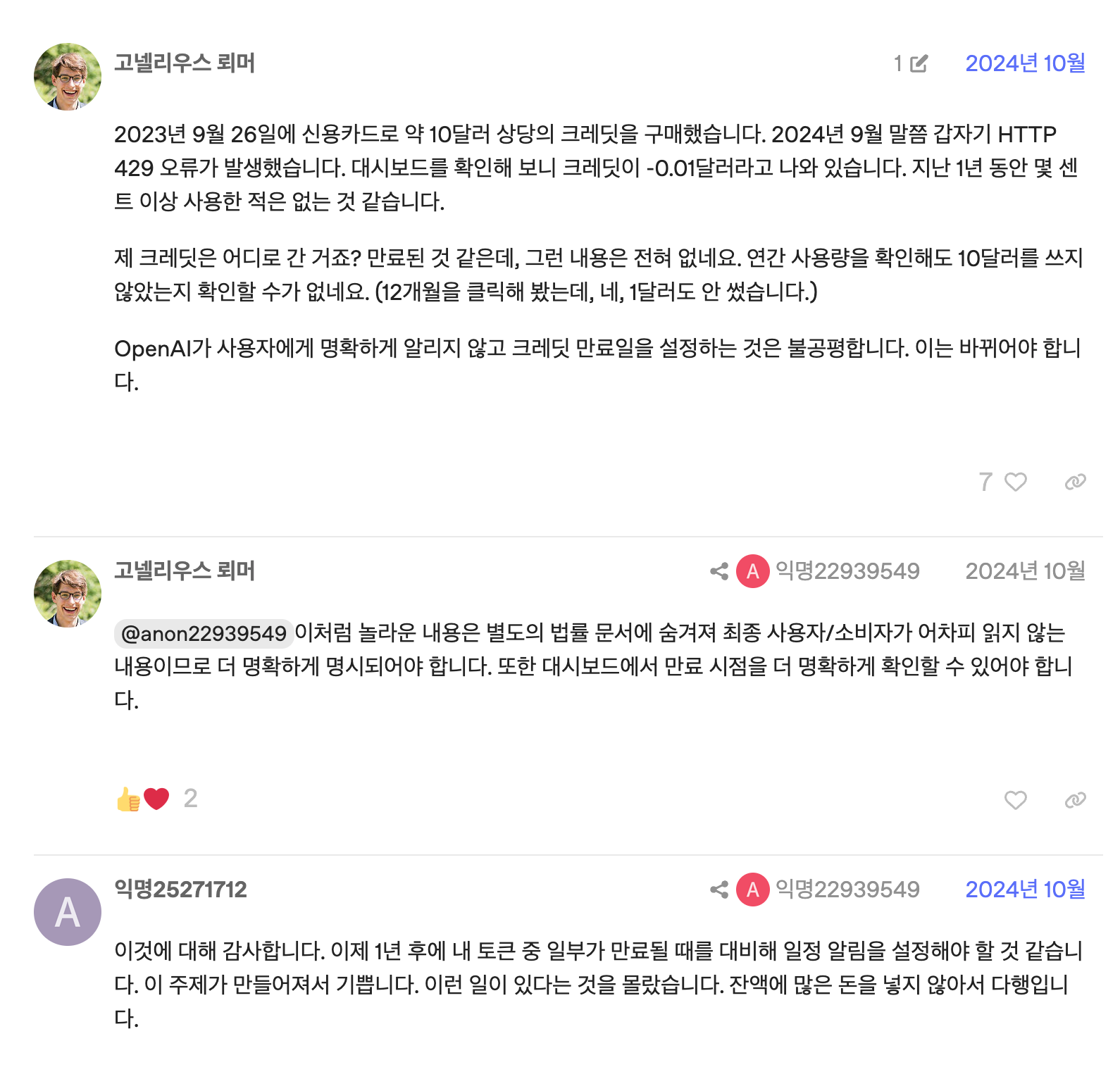 9월 1일에 expire 되었다는 충격적인 이야기 선결제한 금액이 다 쓰지 않으면 소멸되는 이런 듣도 보도 못한 정책에 화가 나서 구글링해보니 일부 레딧 사용자들도 빡쳐서 글을 올린 내용을 확인할 수 있었다.